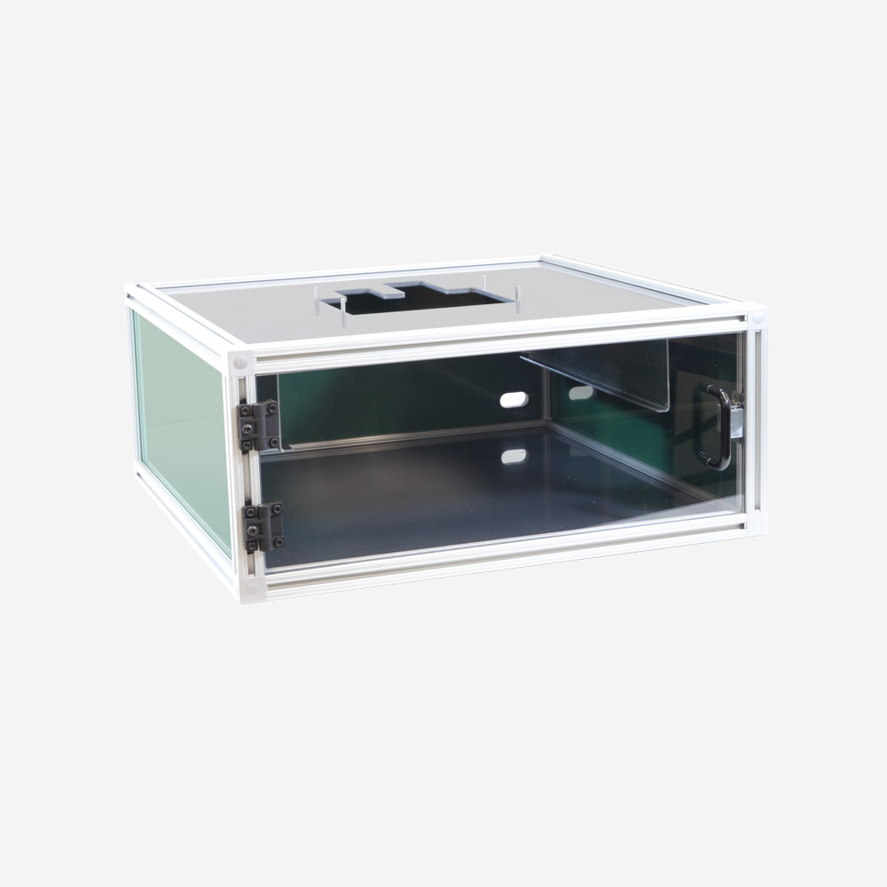 Holds cage, scale, waste separation filter + frame, and urine collection pan + support.