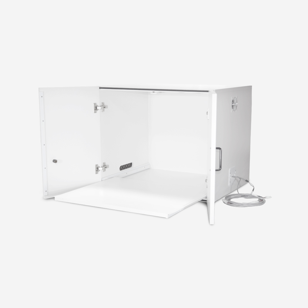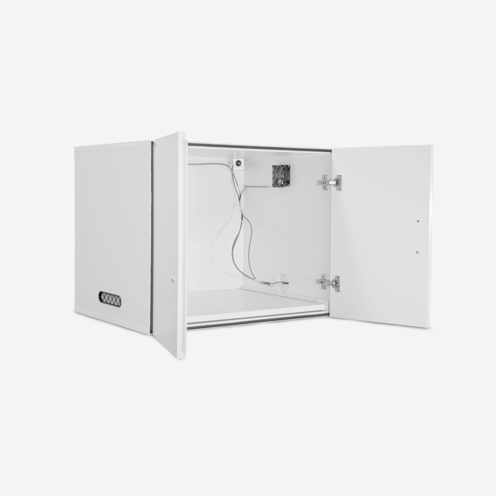 - MDF sound attenuating cubicle with pull-out drawer for easy access to animals